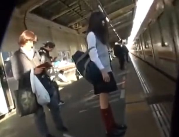【電車盗撮】女子校生に身の危険がwww痴漢が背後からスカート隠し撮りに!それには飽き足らず指を伸ばし手マン始めたwww