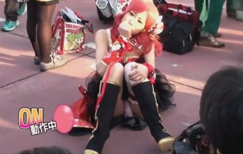 【ローター装着×盗撮】コミケでアソコにローター入れてポージング!感じるのを我慢しながらカメラにポーズをとる罰ゲームww